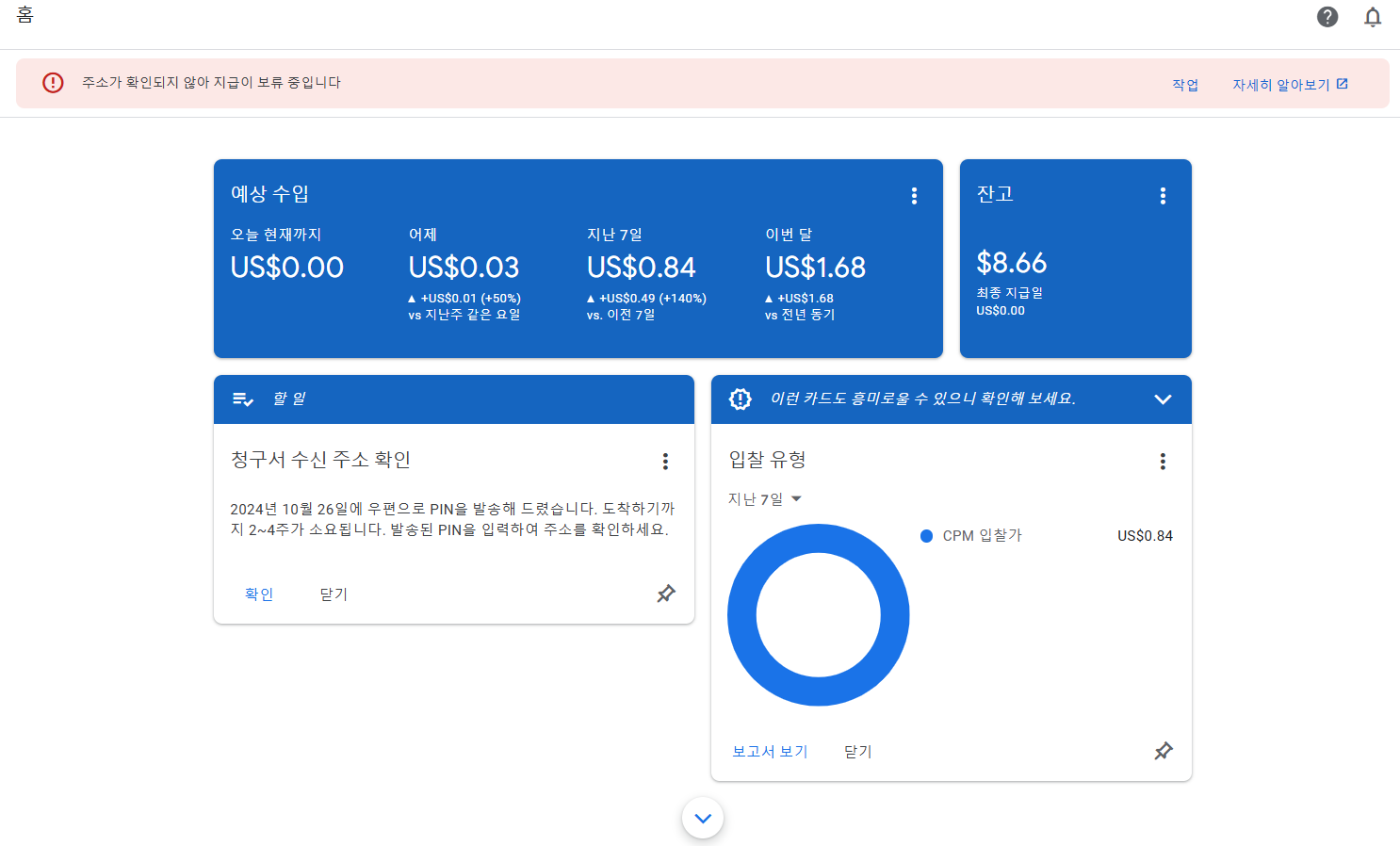 애드센스를 시작한 지 대략 100일 정도 된 것 같아서 세어보니