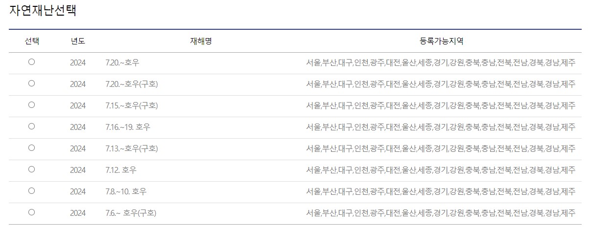 시청이나 군청 등 방문해서 신고하던 자연재난 피해신고 민원을 인터넷으로도 할 수 있게 되었습니다. 2024년 7월 20일 현재에는 호우피해 접수를 할 수 있습니다. 재난이 종료된 날로부터 10일 이내에 피해신고를 해야 합니다.